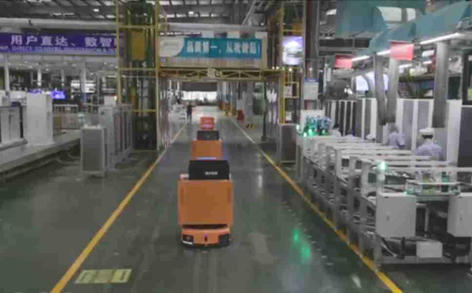 为车载冰箱物流配送打造的智能解决方案,,,,包含产中物流通过潜伏举升AMR搬运至线边,,,产后成品物流智能仓储,,,流程包含产中物流智能齐套入库,,,,线边安灯叫料AMR智能配送至线边,,,成品入库、、、、出库,,,通过无人堆高车机器人,,,智能仓储管理替代人工作业管理,,,,实现更高存储、、更高效率、、更具柔性化的解决方案。。。。